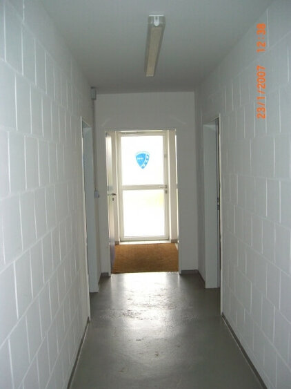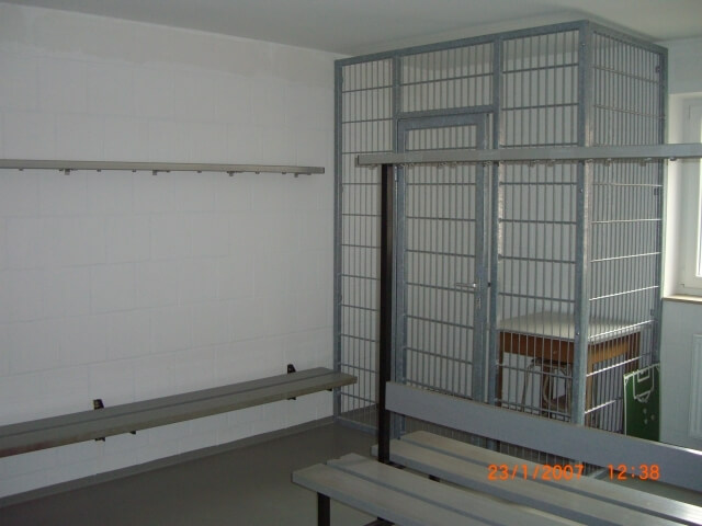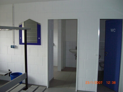 Es entstand ein Gebäude in massiver Bauweise, welches an den alten Umkleidebereich gesetzt wurde. Zwei Umkleidekabinen mit jeweils eigener Toilette und Duschbereich sorgen nun für einen optimalen Ablauf vor und nach den Spielen. Für die Schiedsrichter entstand eine separate Umkleide, natürlich mit Dusche. Für einen Lagerraum für Sportausrüstung war auch noch Platz.