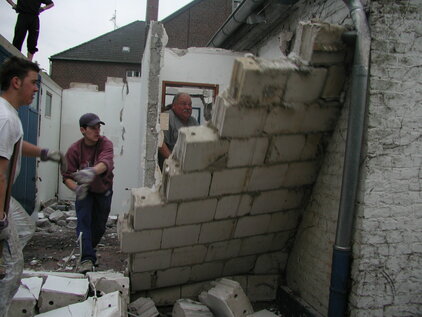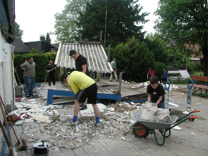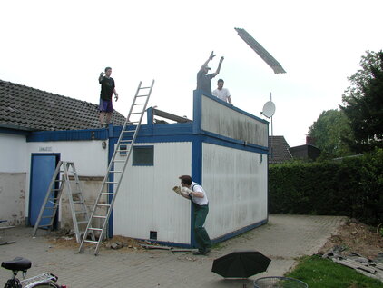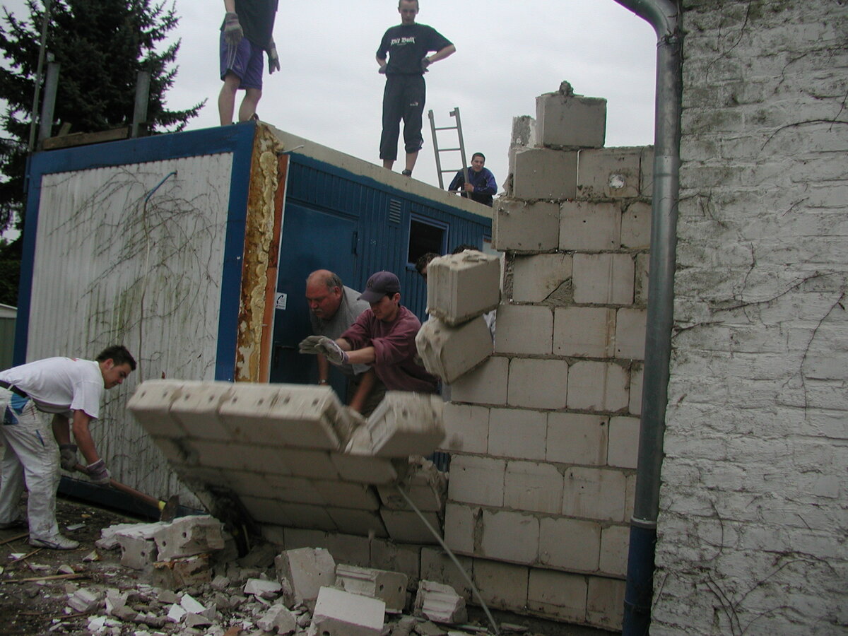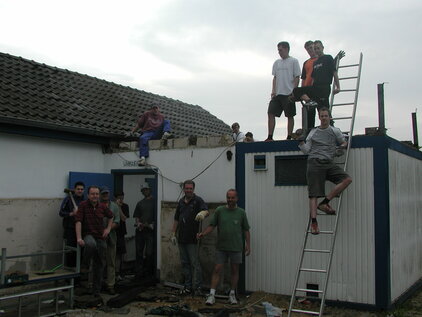 Hier sieht man eine Schnappschüsse vom Abriss des alten Duschcontainer. Eigenleistung war hier angesagt.