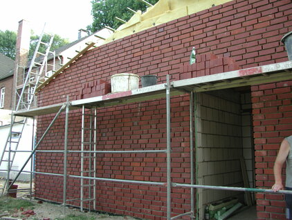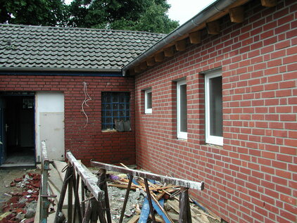 Hier sieht man wie das neue Umkleidegebäude entsteht.