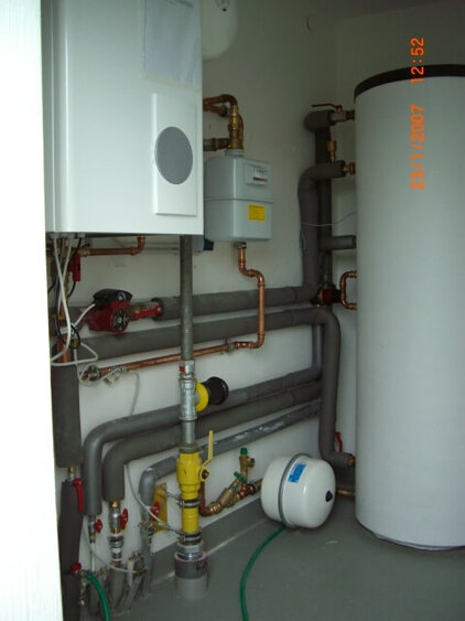 Im provisorischen (20 Jahre....) Duschcontainer wurde mit Flüssiggas geheizt. Hier hat der Verein auf eigene Kosten einen Erdgasanschluß der NEW legen lassen.
