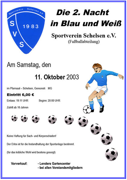 Am 28.09.2002 fand die erste Blau-Weiße Nacht im Schelsener Pfarrsaal statt.